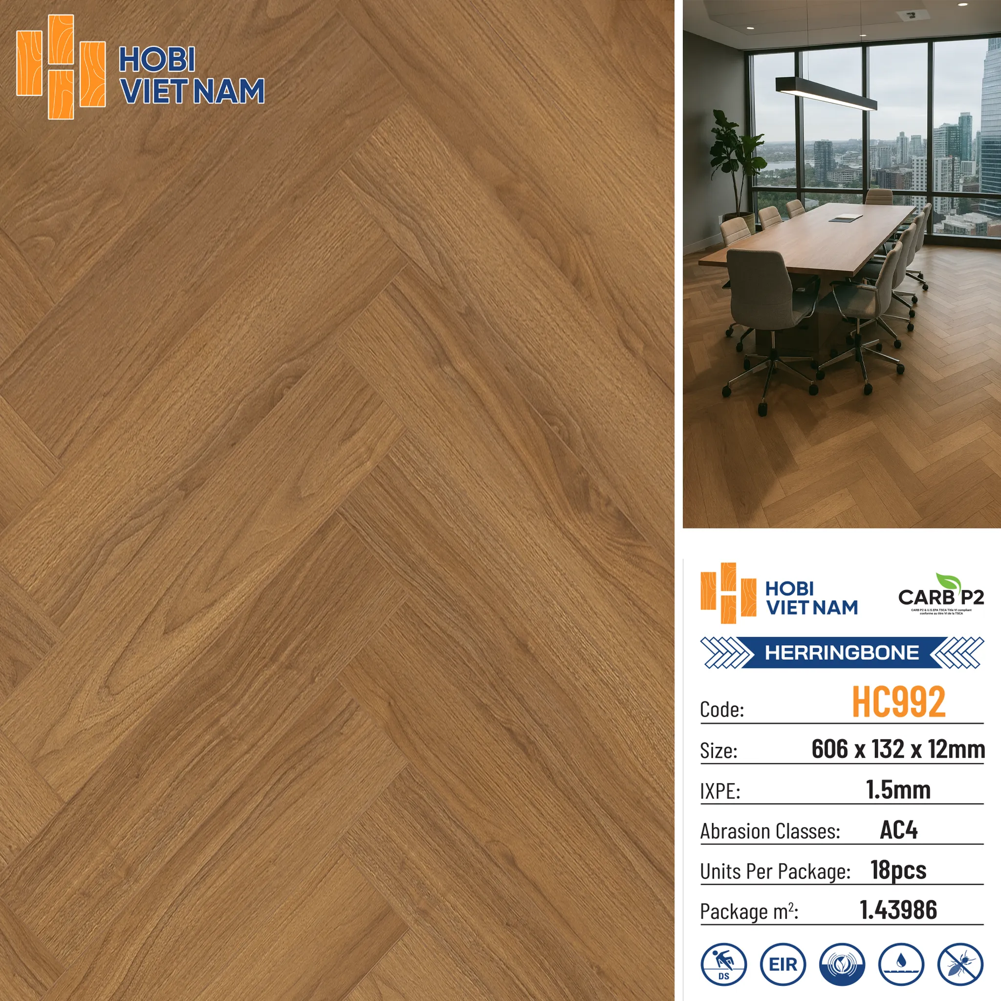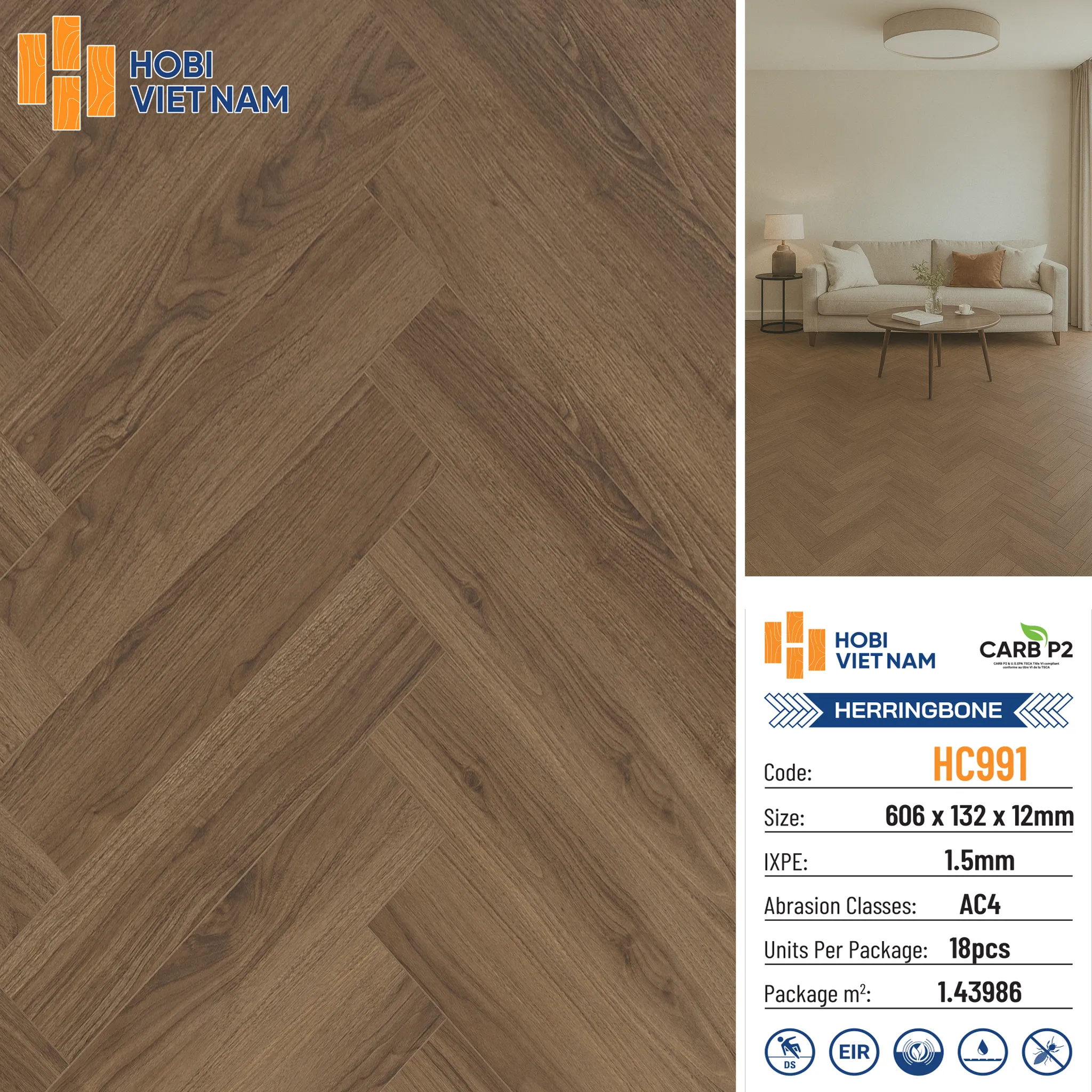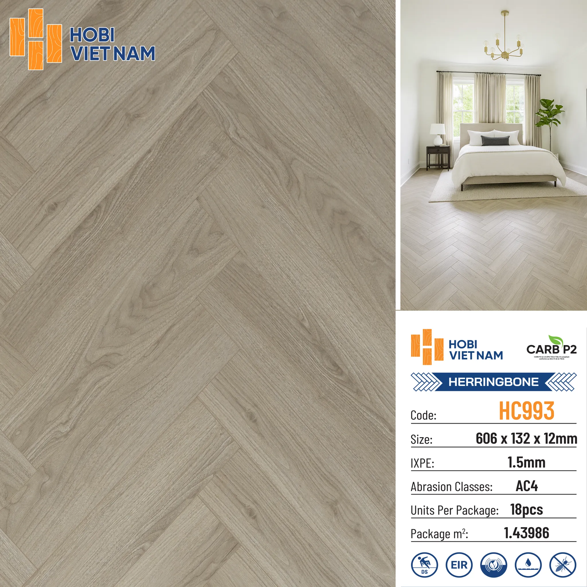 Sàn Gỗ HOBI HC996 Xương Cá 12mm CARB P2 Nâng Tầm Không Gian Sống Đẳng Cấp
